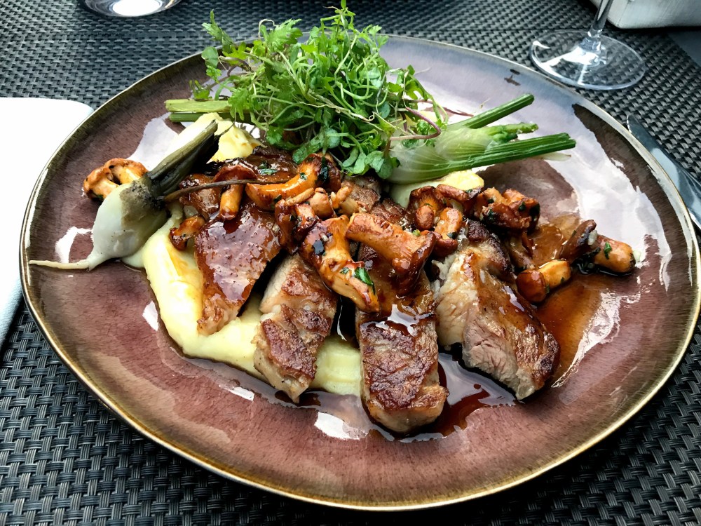 Le plat de viande : La côte de veau française cuite au beurre noisette, petites girolles, purée de pommes de terre à l’huile de citron et jus réduit. Gourmand, ce plat était très bien servi en quantité plus que suffisante avec des girolles de saison. L’accompagnement et le jus sont venus parfaire ce plat.