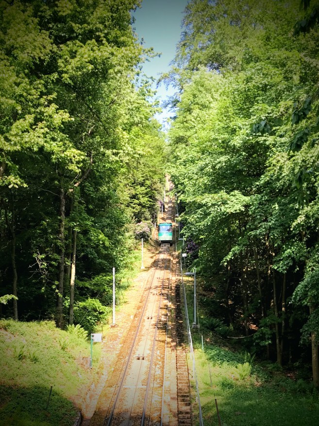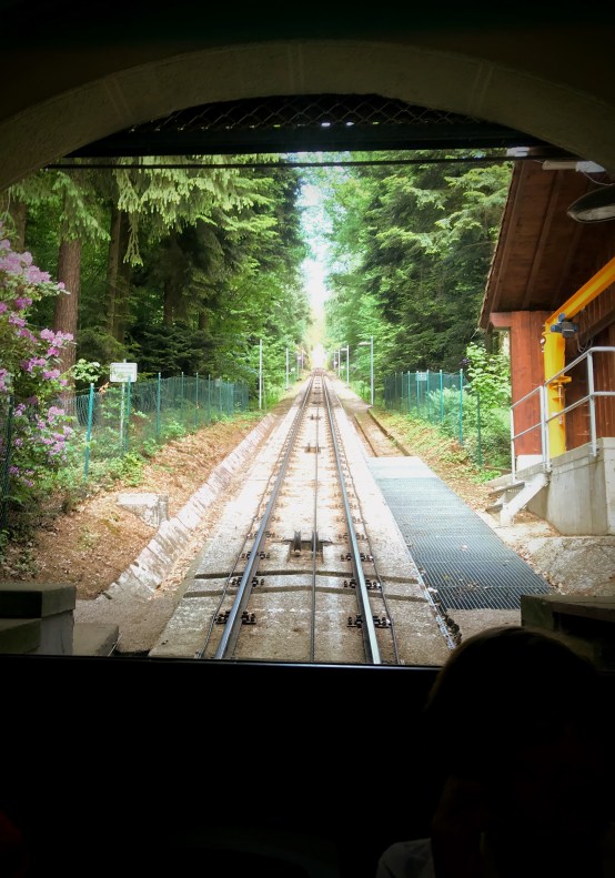Le funiculaire circule toute la journée de 10h à 22h à intervalle de 15 minutes (horaires susceptibles d’être modifiés : Merkurberg). Le dénivelé est assez impressionnant et avons eu quelques craintes en y montant (le funiculaire n’étant pas tout jeune). Attention : ce moment peut être compliqué pour les personnes ayant le vertige. Nous n’avons pas attendu longtemps avant d’atteindre le sommet.
