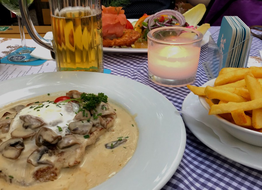 La soirée s’est poursuivie au centre-ville de Baden-Baden (petit conseil parking : celui du Festspielhaus est un bon compromis entre prix et éloignement du centre-ville). Nous sommes allés dans un restaurant typique, un « Biergarten » pour y prendre un bon « Wienerschnitzel ». Il y a également des restaurants avec des terrasses assez sympathiques mais pensez à réserver avant !