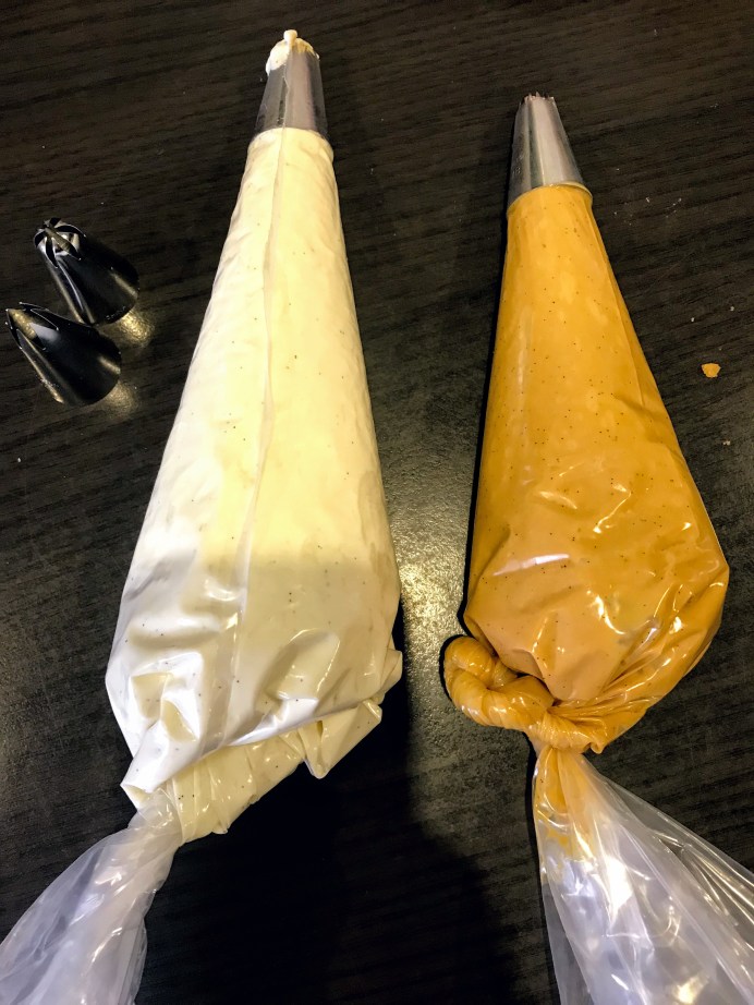Placez la dans une poche à douille, puis mettez également le crémeux dans une autre poche à douille.