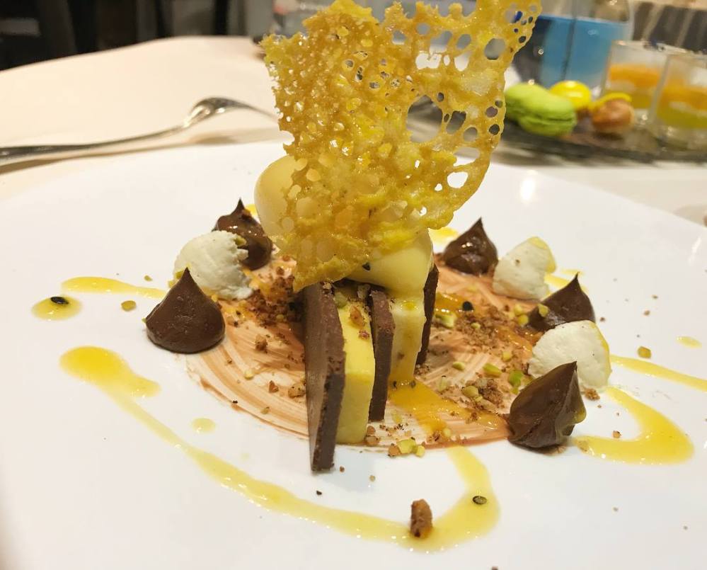 Du chocolat et de la passion pour le dessert ! MIAM ! Une vraie gourmandise, avec de multiples textures, tuiles, crèmes, chantilly, biscuit, croquant, acide, sucré, doux… Rien à redire, c’était tout ce qu’on pouvait attendre pour finir notre repas en apothéose ! Le petit bémol encore et toujours, l’assiette était trop classique, mais cela n’est qu’un avis personnel.
