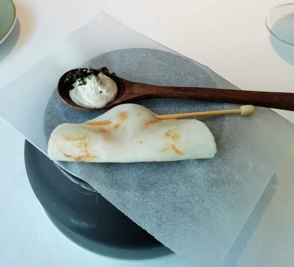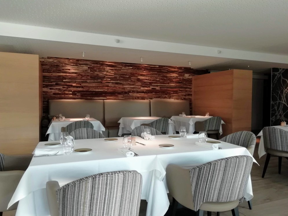 Après un accueil chaleureux par la femme du chef, nous avons été installé dans la salle du restaurant avec une vue sur la terrasse et les espaces extérieurs. Nous nous y sommes tout de suite senti à l’aise dans un environnement calme et cosy parfait pour un repas en amoureux avec une seule hâte : démarrer la dégustation !
