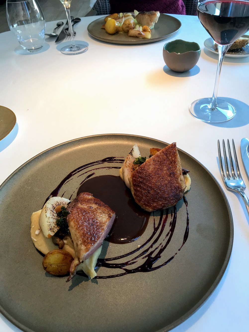 Le plat de viande était composé de canette avec des pickles. La sauce qui liait le tout avait beaucoup de caractère et alliait tous les produits de l’assiette et apportait de la gourmandise au plat.