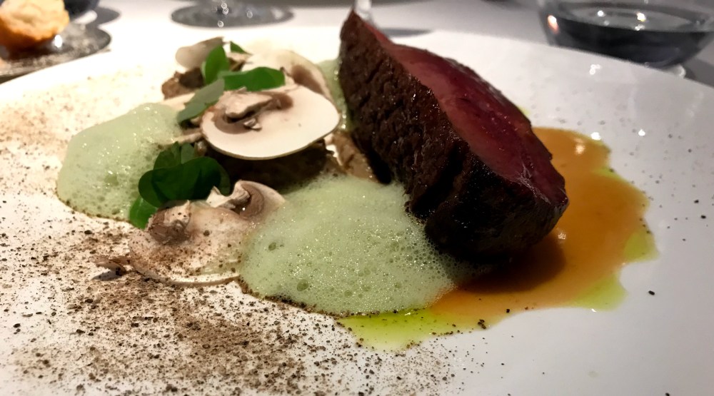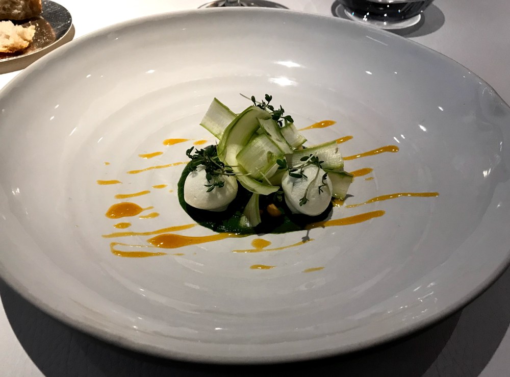 Sur la cuillère nous avions une tarte flambée revisitée surprenante et pour finir un finger à la crème de parmesan et macro fumé. Ces trois propositions étaient toutes différentes entre tradition et revisite avec des textures variées. Avec une telle entrée en matière, nous avions clairement l’eau à la bouche pour la suite des festivités !