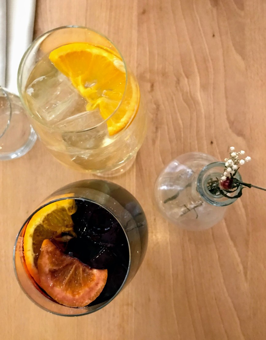 L’intérieur est assez épuré, décoré avec goût entre le carrelage espagnol, quelques éléments en macramé, une structure en bois et les plantes et les tables dressées très simplement sans nappe, mais avec soin. Cela apporte une ambiance cosy avec un petit vase et une belle vaisselle et donne envie d’en découvrir plus, sur ce que nous allons pouvoir déguster.