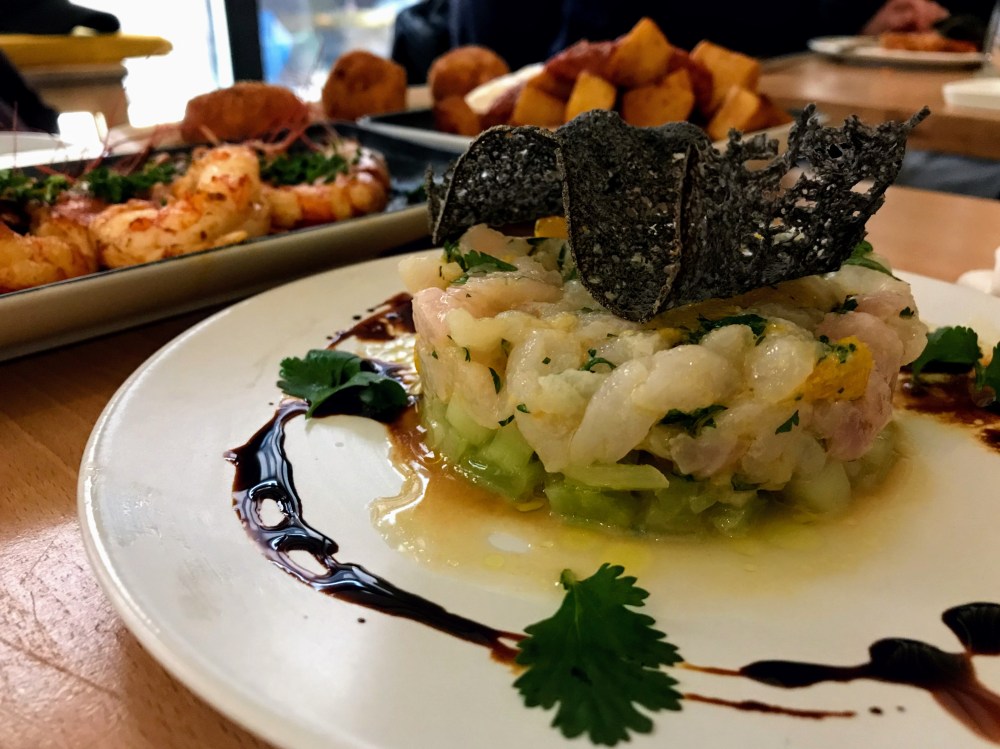 Ensuite, nous avons enchaîné avec des Gambas à l’ail et au paprika fumé. L’assiette était belle et gourmande avec les assaisonnements, pas trop gras, ni trop aillés. Nous avons fini par un tartare de dorade aux agrumes. Très frais, parfait pour l’été.