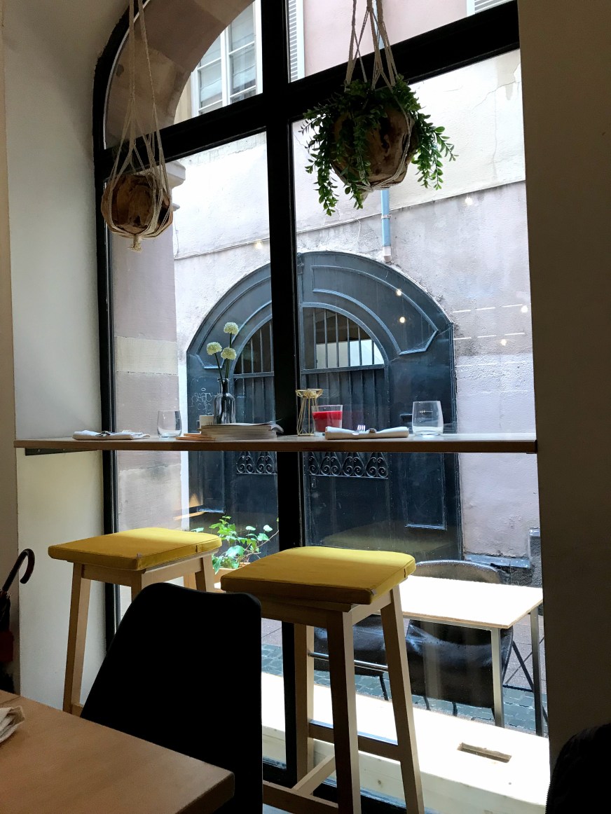 Situé dans une ruelle du centre-ville, vous avez la possibilité de manger au rez-de-chaussée ou à l’étage inférieur.