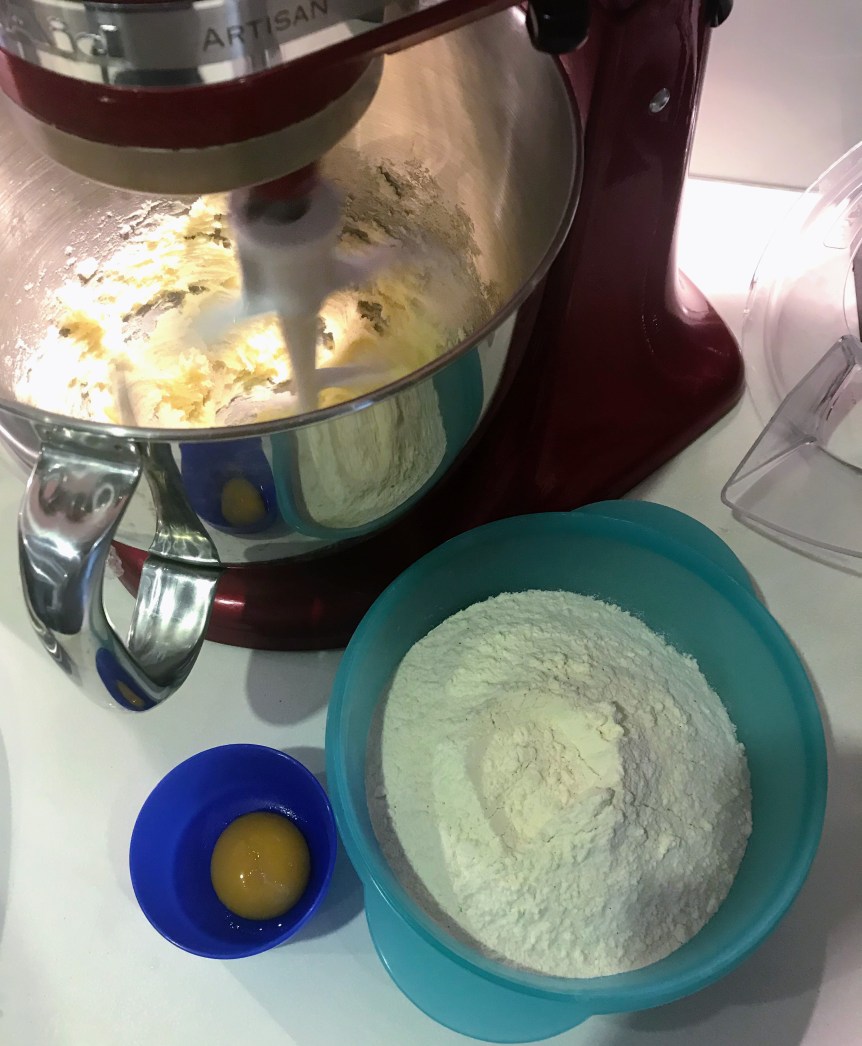 Battez ensuite le beurre, avec les poudres puis les œufs.