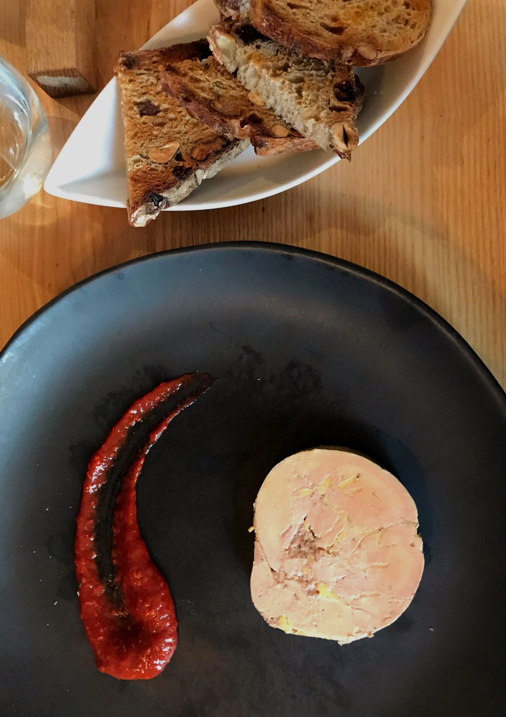 Le foie gras de canard de la ferme du Puntoun a été réalisé maison. Jusque-là, rien d’étonnant, mais le twist intéressant se passe au niveau du chutney plus que surprenant déjà dans l’énoncé du menu : poivron, framboise et piment. C’est exactement ce que nous avons dégusté, nous avons ressenti chaque saveur et sans excès de sucre (ON AIME). Un point important, le toast ! Rien de mieux que du pain de la boulangerie « Au pain de mon Grand-Père » aux fruits secs et noisettes pour apporter du croustillant. Cette assiette n’a pas été un gros coup de cœur, mais a le mérite de nous avoir surpris (chose rare pour du foie gras).