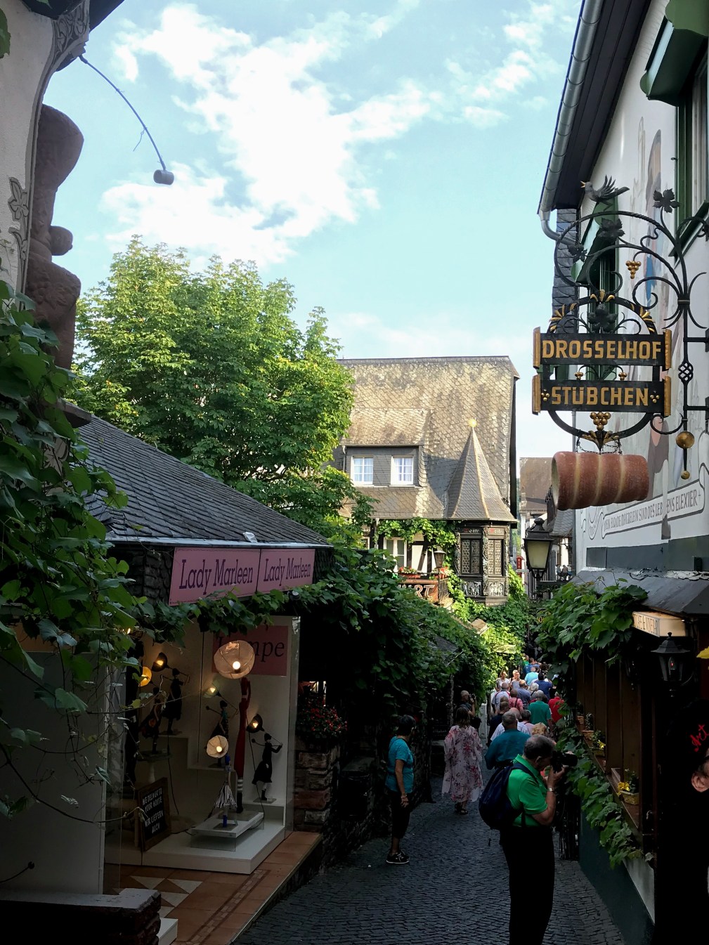 The place to be, LA rue à ne pas manquer à Rüdesheim : La Drosselgasse ! On vous prévient tout de suite, si vous aviez prévu un repas en amoureux au calme, ce n’est pas le meilleur endroit. Des groupes de musiques jouent en live dans quasiment tous les restaurants. De plus, la ville de Rüdesheim accueil beaucoup de croisiériste, du coup pas mal de groupes de plusieurs dizaines de personnes arrivent par vagues. Pensez ainsi à repérer à l’avance et réserver si vous voulez précisément un restaurant, sans avoir à attendre pour avoir une table.
