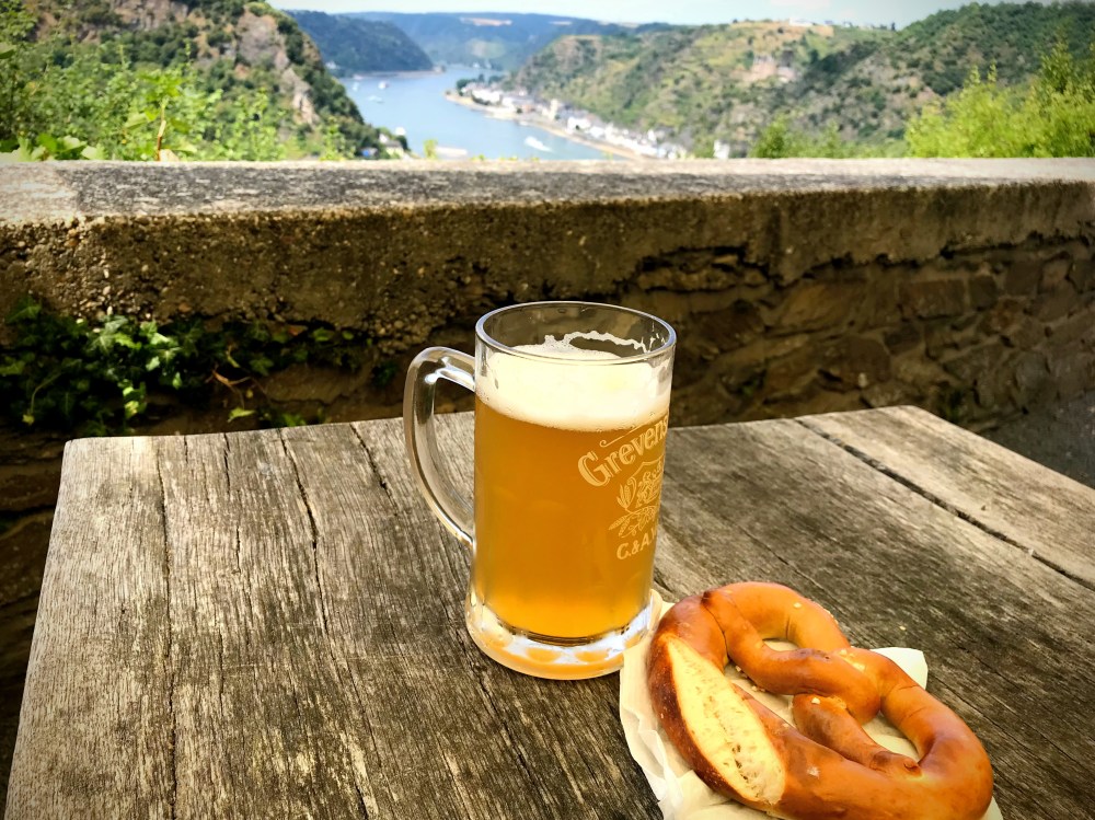 Après avoir été sur les lieux, nous avons opté pour une vue sur la Loreley depuis les hauteurs du Centre de visite (Lorely Besucherzentrum). Nous avons passé un petit bout de temps posé au restaurant / bar pour profiter de la vue imprenable sur le Rhin et la Loreley. Si vous en avez l’occasion, prenez quelques dizaines de minutes pour admirer le paysage et prendre un bretzel et une bière.