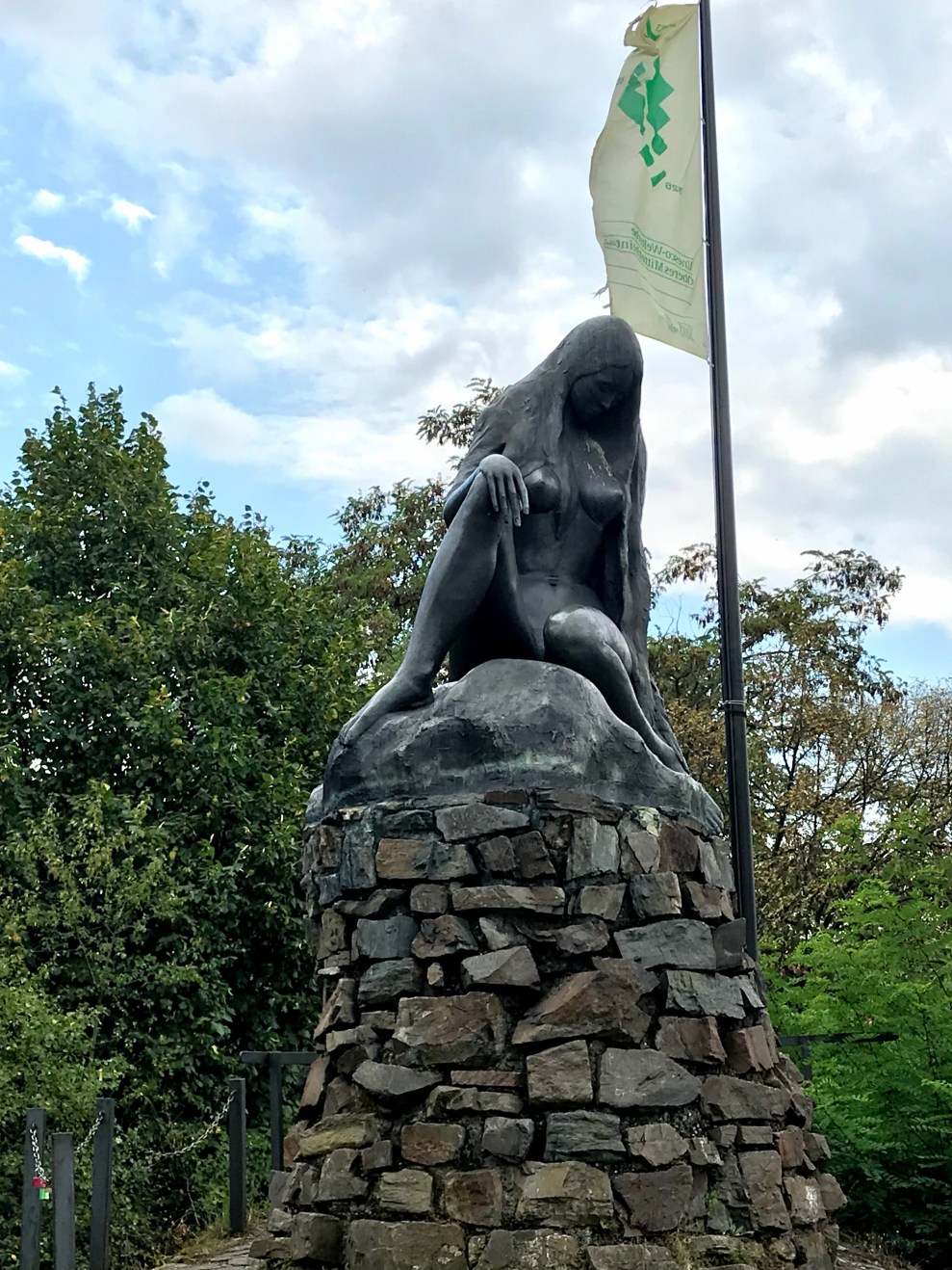 Le lendemain, nous avons décidé de prendre la route pour découvrir à une petite demie heure, la célèbre Loreley. Ce rocher porte une légende : celle d’une nymphe qui attire les navigateurs du Rhin, causant des accidents de navigation… Vous avez peut-être appris durant vos cours d’allemand un poème ou une chanson (exemple : poème de Guillaume Apollinaire). Vous pouvez ainsi voir une statue sur le quai au pied du rocher.